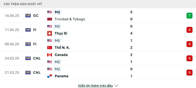 Bên kia chiến tuyến, Mỹ khởi đầu Gold Cup 2025 với chiến thắng hủy diệt 5-0 trước Trinidad & Tobago. Dưới thời HLV Mauricio Pochettino, tuyển Mỹ đang chuyển mình mạnh mẽ, đặc biệt trong lối chơi tấn công tốc độ, hiện đại. Họ sở hữu nhiều nhân tố thi đấu tại châu Âu lẫn trong nước, có thể kể đến những cái tên như Malik Tillman hay Diego Luna. Tuy nhiên, cũng cần lưu ý rằng phong độ của Mỹ trong những trận giao hữu quốc tế gần đây là khá thất thường. Họ từng để thua Thụy Sĩ 0-4 và Canada 1-2, cho thấy sự thiếu ổn định nếu gặp những đội có tổ chức phòng ngự tốt.