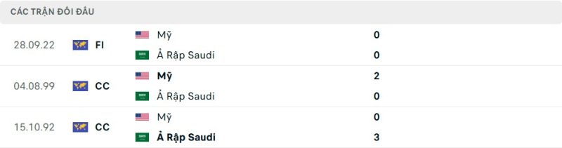 Thành tích đối đầu của Ả Rập Xê Út vs Mỹ