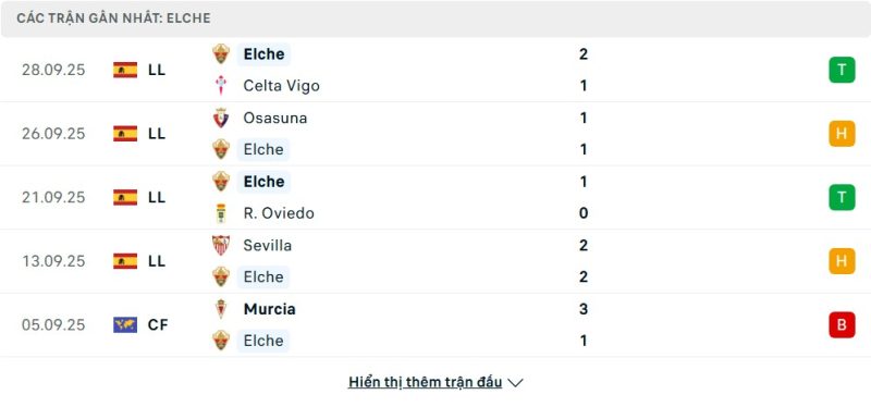Bên kia chiến tuyến, Elche có một mùa giải khá ấn tượng cho đến nay. Đứng ở vị trí thứ 4 trên bảng xếp hạng với 13 điểm, họ đã thể hiện một phong độ ấn tượng. Elche đang có chuỗi 3 trận thắng liên tiếp và một số kết quả ấn tượng, như thắng Levante 2-0 và hòa Real Betis 1-1. Lối chơi của Elche hiện tại tỏ ra khá ổn định và họ sẽ tìm cách duy trì đà thăng hoa này trong các trận đấu tiếp theo. Với sự tự tin này, Elche sẽ làm khách với tinh thần tốt.