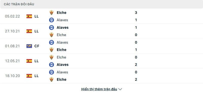 Bảng Tỷ lệ kèo bóng đá Alavés vs Elche
