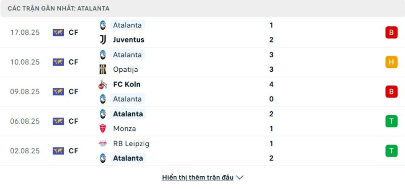 Atalanta bước vào mùa giải mới với tư cách là một thế lực quen thuộc tại Serie A, tuy nhiên giai đoạn chuẩn bị của họ lại không thực sự thuyết phục. Đội bóng thành Bergamo đã có những kết quả đáng lo ngại trong loạt trận giao hữu mùa hè, bao gồm các thất bại trước Juventus và đặc biệt là trận thua đậm trước Köln. Dù vậy, họ cũng thể hiện được sức mạnh khi giành chiến thắng trước những đối thủ đáng gờm như Leipzig và Monza. Phong độ trồi sụt này cho thấy Atalanta vẫn đang trong quá trình tìm lại sự ổn định trước khi mùa giải chính thức khởi tranh.