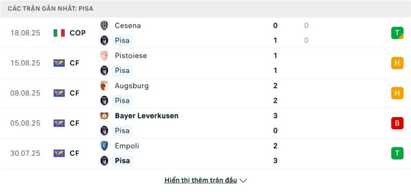Bên kia chiến tuyến, Pisa đang có hành trang là sự hưng phấn của một tân binh. Sau khi giành quyền thăng hạng từ Serie B, đội bóng này đã có một mùa hè cực kỳ thành công. Họ bất bại trong 6/7 trận gần nhất, trong đó có chuỗi 3 chiến thắng liên tiếp và những trận hòa kiên cường trước các đối thủ mạnh như Augsburg. Đáng chú ý nhất, Pisa đã xuất sắc vượt qua Cesena tại Coppa Italia, một liều thuốc tinh thần không thể tuyệt vời hơn. Sự tự tin và phong độ cao chính là vũ khí lớn nhất của Pisa trong chuyến làm khách đầy thử thách này.