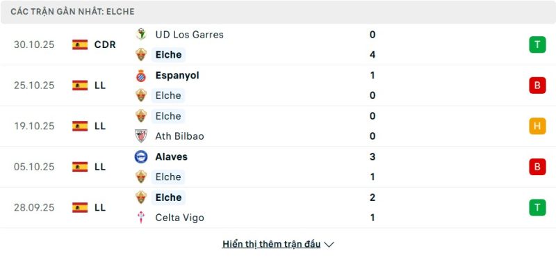 Bên kia chiến tuyến, Elche đang có một khởi đầu mùa giải tương đối ổn định, tạm xếp ở vị trí thứ 8 trên bảng xếp hạng với 14 điểm. Đội khách nổi bật với lối chơi phòng ngự chắc chắn, khi mới chỉ để thủng lưới 10 bàn sau 10 vòng. Tuy nhiên, phong độ gần đây của họ lại không tốt, chỉ thắng 1 trong 5 trận La Liga gần nhất. Những kết quả đáng chú ý bao gồm trận thua 0-1 trước Espanyol và trận hòa 0-0 với Athletic Club, cho thấy sự khó khăn trong khâu ghi bàn.