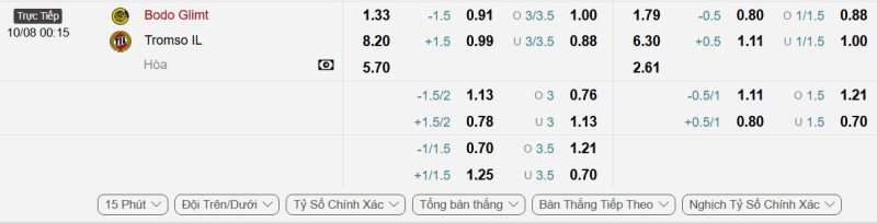 - Kèo tỷ số bóng đá hiệp 1: Bodø/Glimt 1-1 Tromsø
