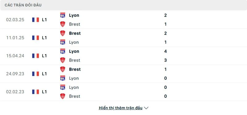 Bảng Tỷ lệ kèo bóng đá Brest vs Lyon