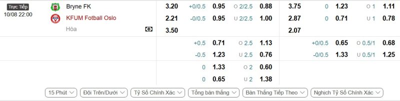 Bảng Tỷ lệ kèo bóng đá Bryne vs KFUM