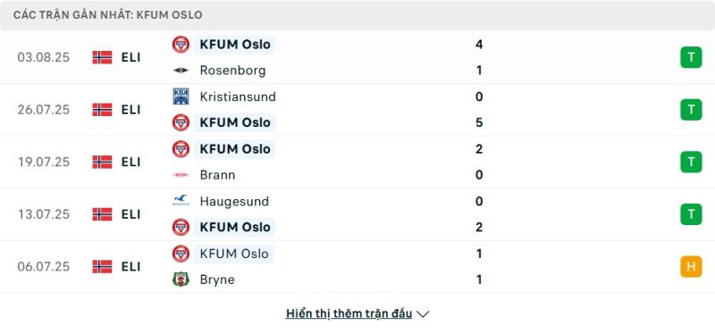Bên kia chiến tuyến, KFUM đang bay cao với chuỗi 4 trận bất bại, trong đó có ba chiến thắng khá thuyết phục. Màn vùi dập Kristiansund 5-0 cho thấy sức mạnh tấn công đang lên của đội bóng này, trước đó họ cũng đánh bại Haugesund và vừa giành thêm 3 điểm quan trọng trước Rosenborg. Sự ổn định và khả năng duy trì phong độ trước cả các đối thủ mạnh giúp KFUM bứt phá trên bảng xếp hạng. Họ không còn là tân binh dễ bắt nạt như đầu mùa.