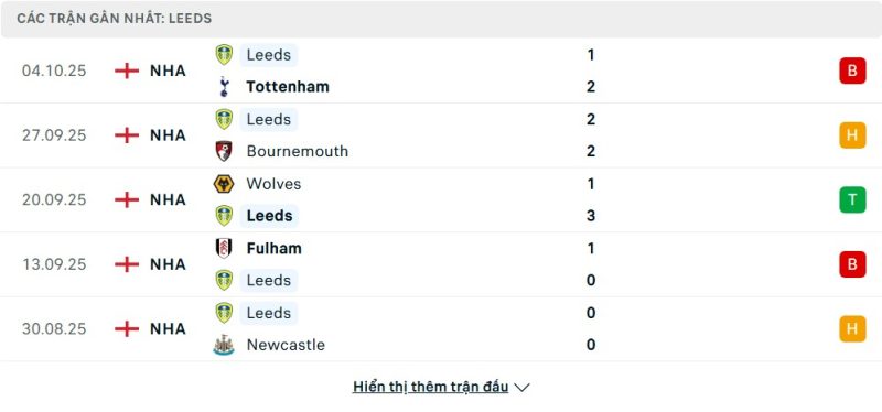 5 trận gần nhất của Leeds United: L-D-W-L-D