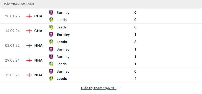 Thống kê phong độ gần đây Burnley vs Leeds United