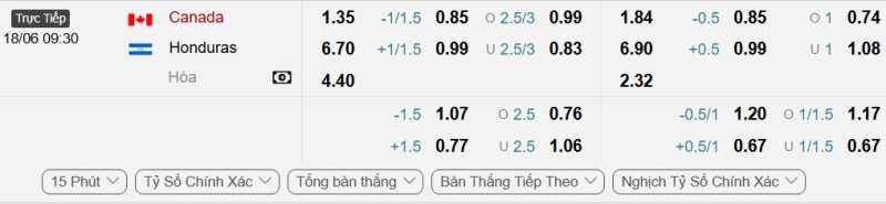 Bảng Tỷ lệ kèo bóng đá Canada vs Honduras