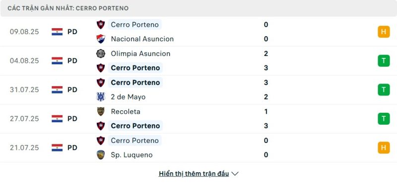- Phong độ của Cerro Porteño