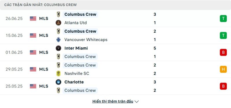 Columbus Crew bước vào trận đấu này với vị thế của một trong những đội bóng đáng chú ý nhất tại MLS. Lối chơi gắn kết, tổ chức bài bản và khả năng phối hợp mạch lạc giúp họ luôn tạo được thế trận chủ động trước hầu hết các đối thủ. Dù không phải lúc nào cũng giành trọn 3 điểm, nhưng Columbus luôn biết cách khiến các trận đấu trở nên khó đoán. Họ duy trì được sự tập trung trong cả hai hiệp đấu, không dễ để bị lấn át, và thường xuyên phản ứng tốt khi bị dẫn trước.