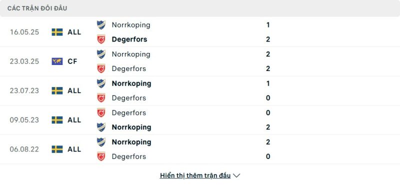 Thống kê phong độ gần đây Degerfors IF vs IFK Norrköping