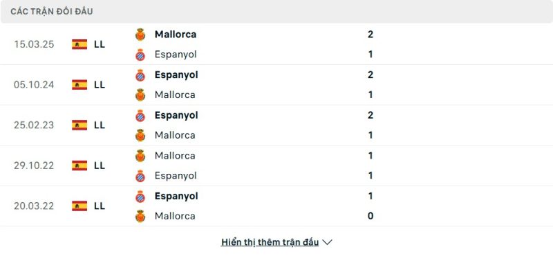 Bảng Tỷ lệ kèo bóng đá Espanyol vs Mallorca