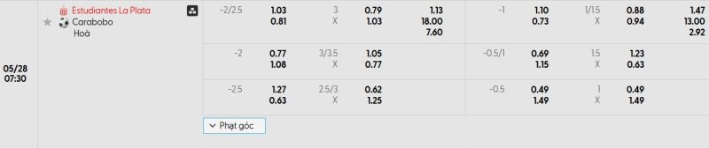 Bảng Tỷ lệ kèo bóng đá Estudiantes de La Plata vs Carabobo