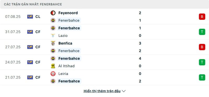 Thống kê phong độ gần đây Fenerbahçe vs Feyenoord