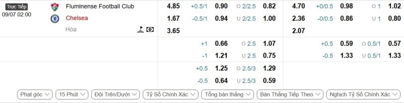 Bảng Tỷ lệ kèo bóng đá Fluminense vs Chelsea