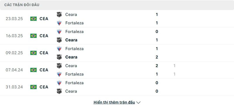 Thống kê phong độ gần đây Fortaleza vs Ceará