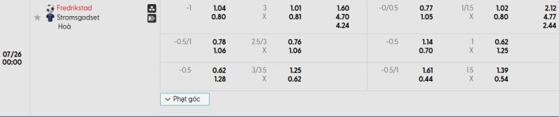 Bảng Tỷ lệ kèo bóng đá Fredrikstad vs Strømsgodset