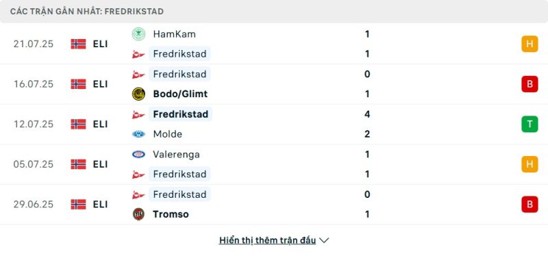 Fredrikstad đang có vị trí tạm ổn trong nhóm giữa bảng, với một số kết quả đáng chú ý gần đây. Họ từng đánh bại Molde trên sân nhà, chia điểm với HamKam và Valerenga, nhưng cũng đã phải nhận thất bại trước Bodo/Glimt và Tromso, hai đội đang nằm trong top 4. Dù chưa thật sự ổn định, Fredrikstad vẫn cho thấy tiềm năng bám trụ ở nhóm cạnh tranh suất trụ hạng an toàn.