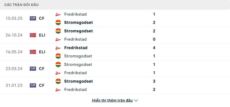 Thành tích đối đầu của Fredrikstad vs Strømsgodset