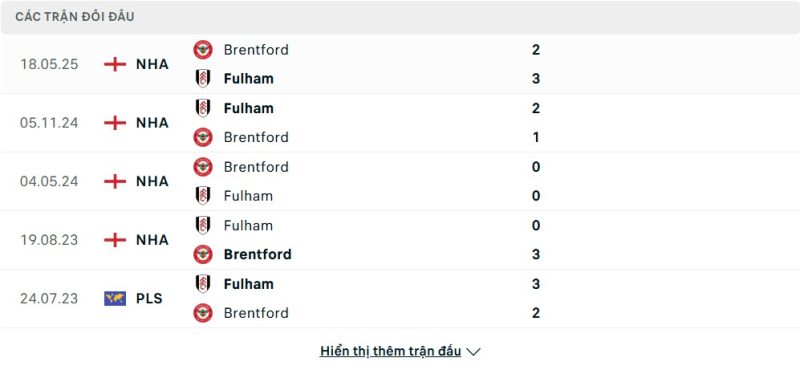 Bảng Tỷ lệ kèo bóng đá Fulham vs Brentford