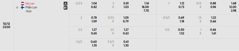Bảng Tỷ lệ kèo bóng đá Hà Lan vs Phần Lan