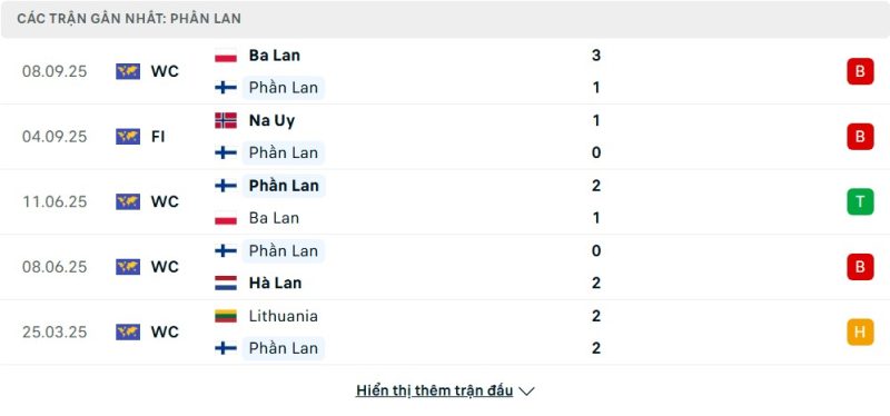 5 trận gần nhất của Phần Lan: L-L-W-L-D