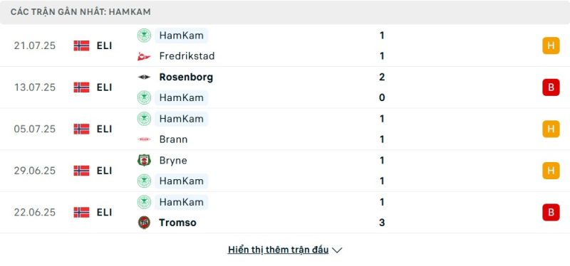 Bên kia chiến tuyến, HamKam cũng chẳng khá hơn khi đứng thứ 14 và chỉ hơn nhóm cầm đèn đỏ đúng 2 điểm. Họ vừa chia điểm với Fredrikstad trên sân nhà, trước đó là các trận hòa liên tiếp với Brann, Bryne và một trận thua sát nút trước Rosenborg. Trong 5 vòng gần nhất, HamKam không giành nổi chiến thắng nào. Phong độ thiếu ổn định và tâm lý thi đấu kém bản lĩnh khiến HamKam đang rơi vào thế nguy hiểm khi mùa giải bước vào giai đoạn quan trọng.