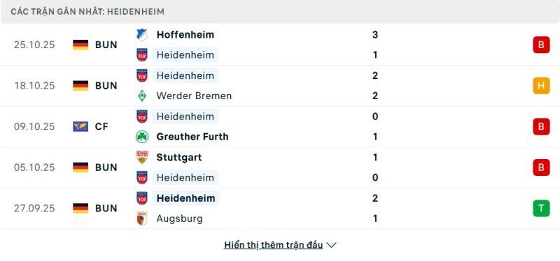 • Phong độ của 1. FC Heidenheim