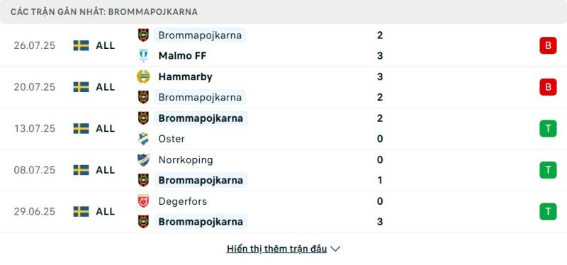 5 trận gần nhất của IF Brommapojkarna: L-L-W-W-W