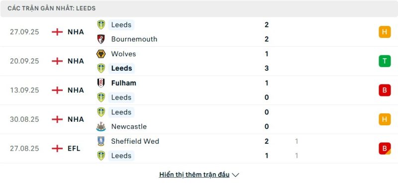 - Phong độ của Leeds United