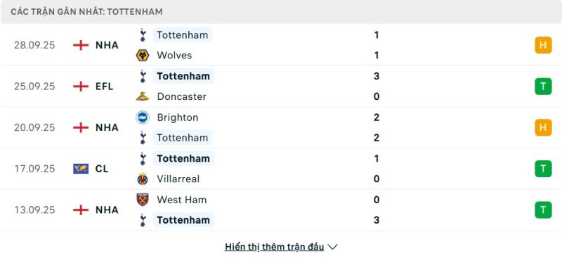 - Phong độ của Tottenham Hotspur