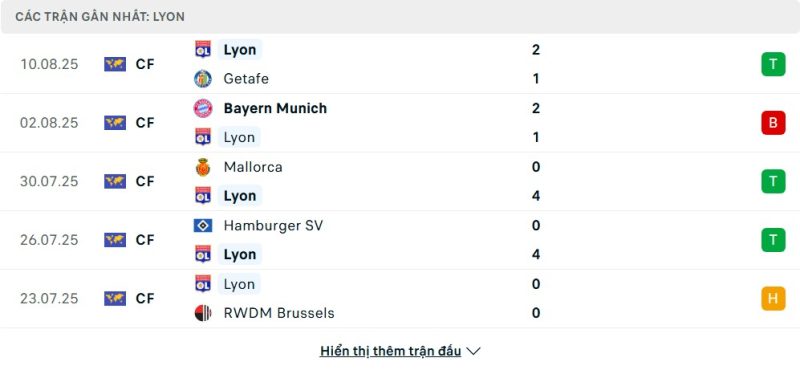 Bên kia chiến tuyến, Lyon cũng cho thấy phong độ tốt khi giành nhiều chiến thắng trong các trận giao hữu, bao gồm việc đánh bại Getafe, Mallorca và HSV với tỷ số đậm. Hàng công của họ ghi bàn khá đều đặn, trong khi hàng thủ cũng thể hiện sự chắc chắn trước những đối thủ tầm trung. Tuy nhiên, thất bại trước Bayern cho thấy Lyon vẫn gặp khó trước các đội bóng có khả năng pressing mạnh và tốc độ cao. Đội bóng này bước vào trận đấu với mục tiêu có điểm, dù phải làm khách.