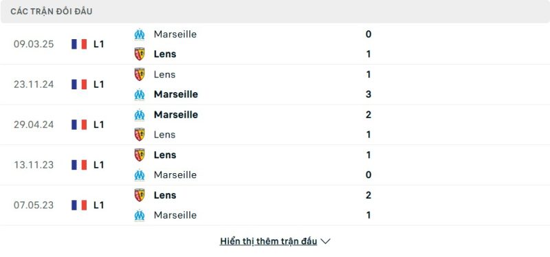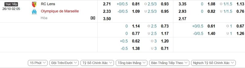 Bảng Tỷ lệ kèo bóng đá Lens vs Marseille