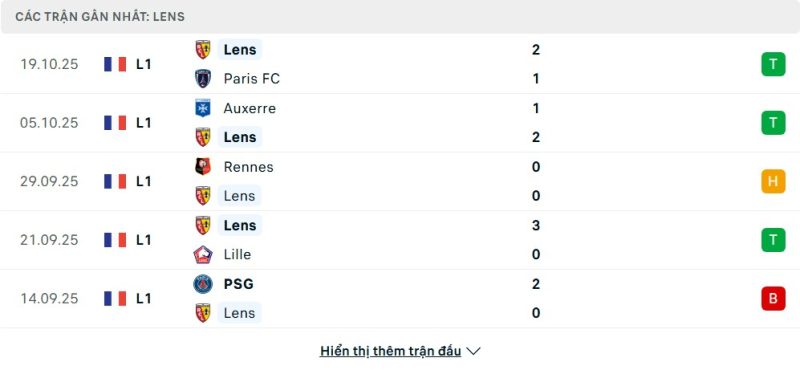 Lens đang duy trì phong độ ấn tượng tại Ligue 1 với chuỗi sáu trận bất bại gần nhất, trong đó có năm chiến thắng. Sau tám vòng đấu, đội bóng của HLV Pierre Sage đang góp mặt trong nhóm dẫn đầu, chứng minh sự trở lại mạnh mẽ sau khởi đầu không mấy suôn sẻ. Chiến thắng trước Lille, Paris và Auxerre cho thấy họ biết cách vượt qua đối thủ mạnh bằng lối chơi chặt chẽ và kỷ luật. Hàng công của Lens với Thomasson và Édouard đang đạt hiệu suất cao, giúp đội tạo áp lực đáng kể lên mọi hàng thủ tại giải đấu.