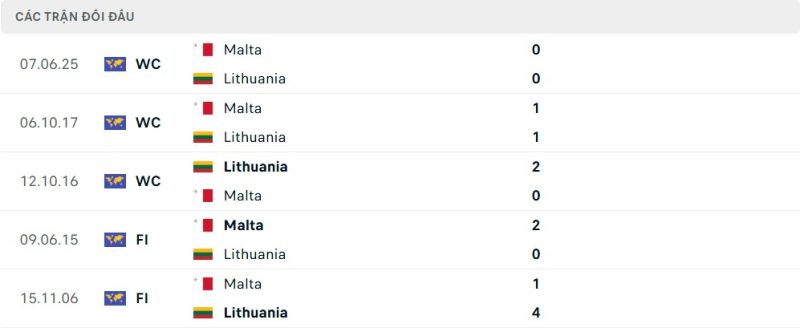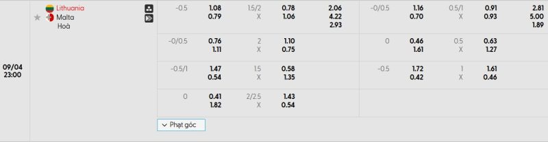 Bảng Tỷ lệ kèo bóng đá Lithuania vs Malta