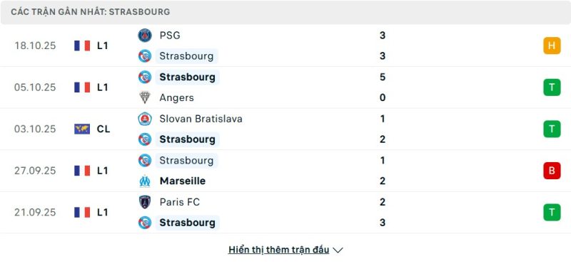 Strasbourg đang trải qua chuỗi trận ấn tượng, leo lên nửa trên bảng xếp hạng Ligue 1 và thi đấu đầy tự tin tại UEFA Conference League. Dưới bàn tay của HLV Liam Rosenior, đội bóng này đã bất bại bốn trận gần nhất, trong đó có những chiến thắng vang dội trước Angers, PSG và Slovan. Sự kết hợp ăn ý giữa các tuyến giúp Strasbourg kiểm soát tốt thế trận và duy trì hiệu suất ghi bàn đều đặn. Dù đôi khi hàng phòng ngự còn thiếu ổn định, nhưng tinh thần chiến đấu và sự gắn kết tập thể đã giúp họ trở thành đối thủ rất khó chịu cho bất kỳ đội nào.