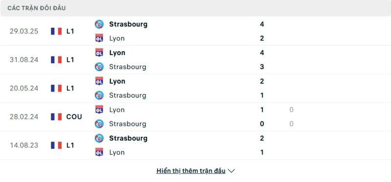 Thống kê phong độ gần đây Lyon vs Strasbourg