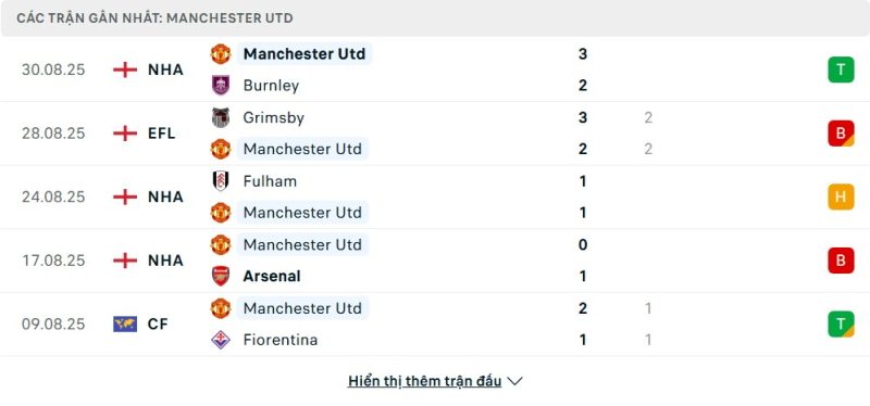 Bên kia chiến tuyến, Manchester United cũng không khá khẩm hơn là bao. Họ đang tạm xếp thứ 9 với 4 điểm sau 3 trận, một thành tích đầy bất ổn. “Quỷ Đỏ” để thua Arsenal trong trận mở màn, bị Fulham cầm hòa thất vọng và chỉ có được chiến thắng chật vật trước Burnley. Cú sốc lớn nhất đến ở đấu trường EFL Cup, nơi họ bị đội bóng hạng dưới Grimsby loại trên chấm luân lưu. Chuỗi kết quả này cho thấy đội bóng của HLV Ruben Amorim vẫn còn rất nhiều việc phải làm để tìm lại sự ổn định và bản lĩnh của một ông lớn.