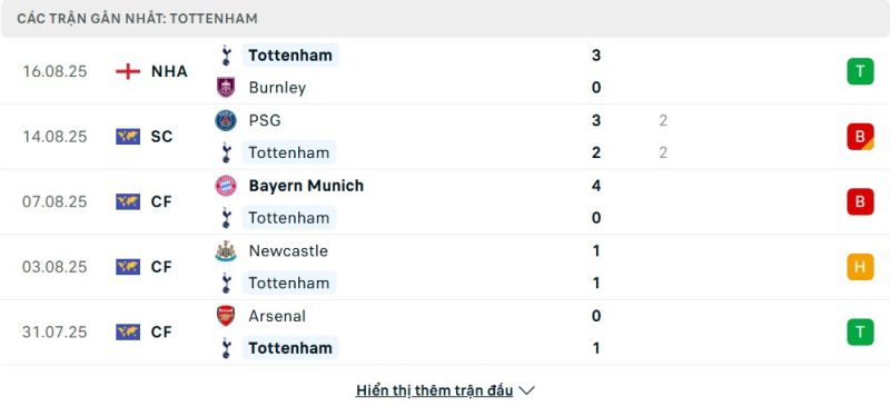 - Phong độ của Tottenham Hotspur