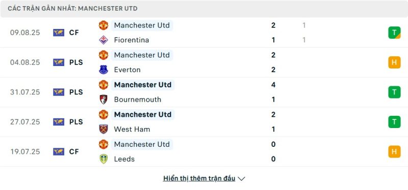 Manchester United bước vào mùa giải mới với tâm thế tự tin sau loạt trận giao hữu khá thành công. Họ đánh bại West Ham, Bournemouth và Fiorentina, đồng thời cầm hòa Everton trong trận cầu sôi động. Dù vẫn để thua bất ngờ trước ASEAN All-Stars, nhưng nhìn chung Quỷ đỏ thể hiện lối chơi gắn kết hơn ở cả tấn công lẫn phòng ngự. Việc giữ sạch lưới trước Leeds và thắng Aston Villa ở cuối mùa trước cho thấy sự tiến bộ rõ rệt. Được chơi trên sân nhà Old Trafford, Man United chắc chắn sẽ muốn khởi đầu mùa giải bằng một kết quả tích cực.