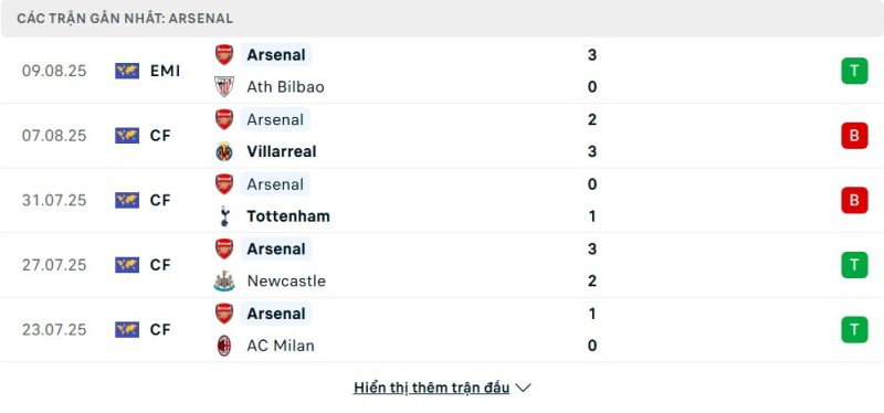 Bên kia chiến tuyến, Arsenal có sự chuẩn bị tương đối tốt với nhiều trận đấu chất lượng trước mùa. Họ thắng Athletic Club, Milan và Newcastle trong các trận giao hữu căng thẳng. Tuy nhiên, thất bại trước Villarreal và Tottenham cho thấy Pháo thủ vẫn cần cải thiện tính ổn định. Mùa trước, Arsenal kết thúc với chuỗi trận bất bại ở giai đoạn cuối, bao gồm chiến thắng trước Southampton và Newcastle, cùng trận hòa Liverpool đầy kịch tính. Với đội hình gần như nguyên vẹn và vài sự bổ sung quan trọng, Arsenal bước vào mùa giải mới với tham vọng cạnh tranh ngôi vô địch.