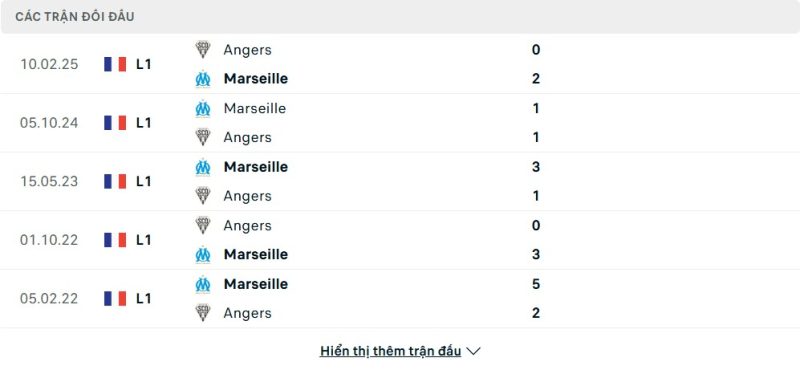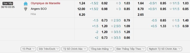 Bảng Tỷ lệ kèo bóng đá Marseille vs Angers