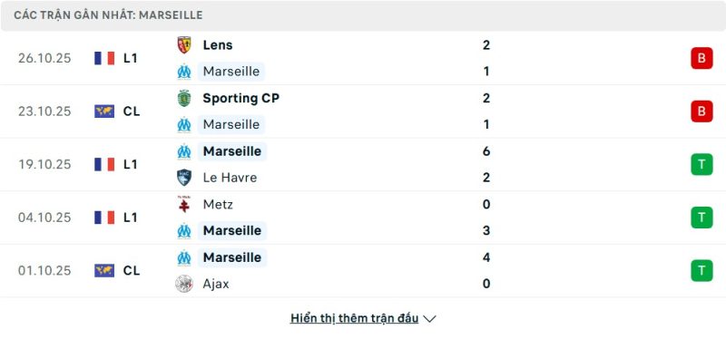 Marseille đang có dấu hiệu chững lại sau một giai đoạn thăng hoa đầu mùa. Đội chủ sân Vélodrome vừa phải nhận hai thất bại liên tiếp, 1-2 trước Lens tại Ligue 1 và 1-2 trước Sporting ở Champions League. Những cú sảy chân này đến ngay sau một chuỗi trận bùng nổ, khi họ thắng áp đảo Le Havre 6-2, hạ gục Metz 3-0, đè bẹp Ajax 4-0 và thậm chí giành chiến thắng 1-0 quan trọng trước PSG. Dù vẫn đang ở nhóm đầu bảng, Marseille cần nhanh chóng lấy lại phong độ nếu không muốn bị bỏ lại trong cuộc đua.