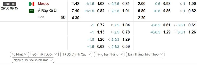 Bảng Tỷ lệ kèo bóng đá Mexico vs Ả Rập Xê Út