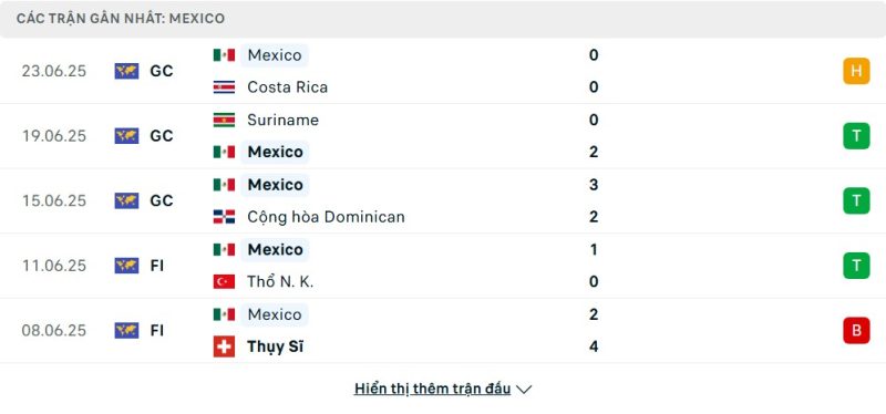 5 trận gần nhất của Mexico: D-W-W-W-L