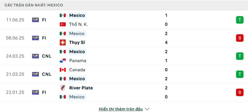 Thống kê phong độ gần đây Mexico vs Cộng hòa Dominica