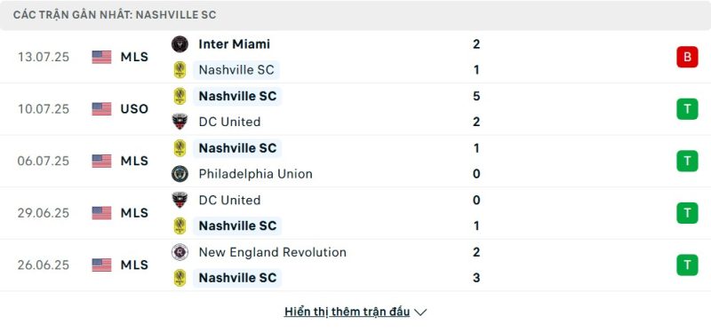 - Phong độ của Nashville SC