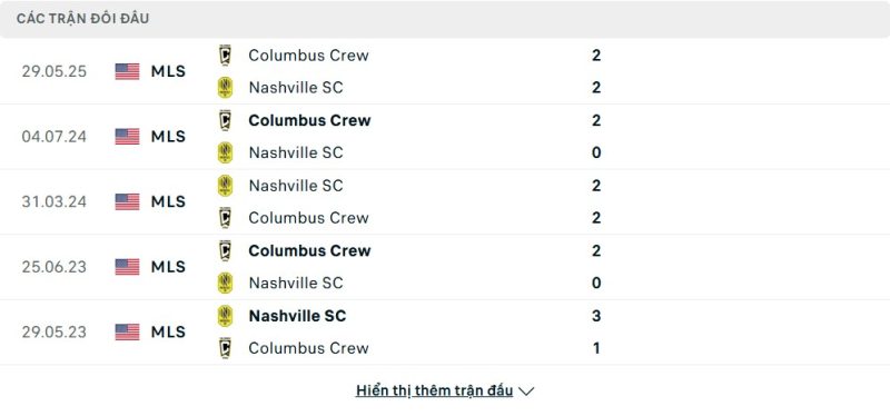 Thành tích đối đầu của Nashville SC vs Columbus Crew